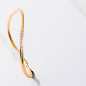 Lassen Sie sich verzaubern von diesem traumhaft gestalteten Armreif in Wellenform in Gold 750/000, geschmückt mit 15 Brillanten. Durch die Form äußerst bequem da sich die „Welle“ perfekt dem Arm anpasst.